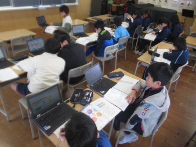 3学期の「3本の矢」の一つ、「マス(math)マス(math)アップ」に取り組む高学年。自分の、自分のための学習をして力を付けていきましょう・・・