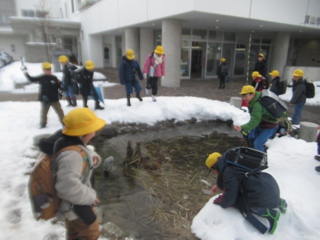 ビオトープには、厚さ約5mmの氷が・・・