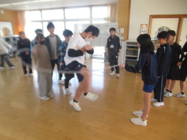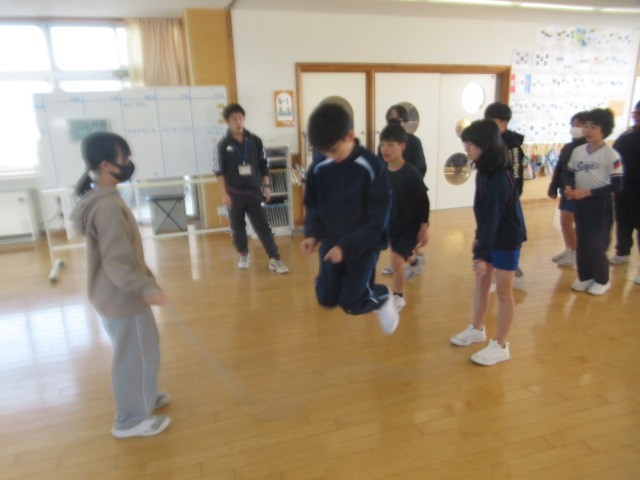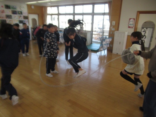 回っている大縄に「入る」 → 大縄から「抜ける(出る)」がスムーズになっています。上の学年ほど、大縄の回転スピードが上がります・・・
