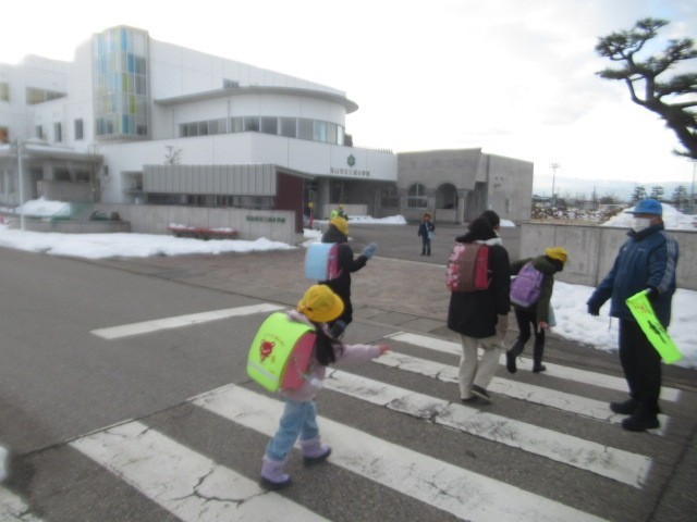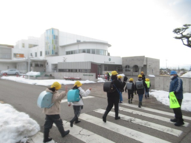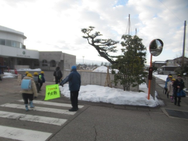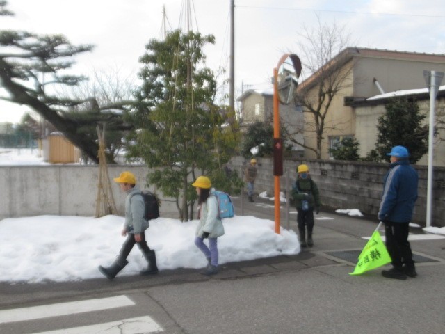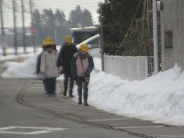 2月にしては穏やかな朝を迎えています。元気に登校しています・・・