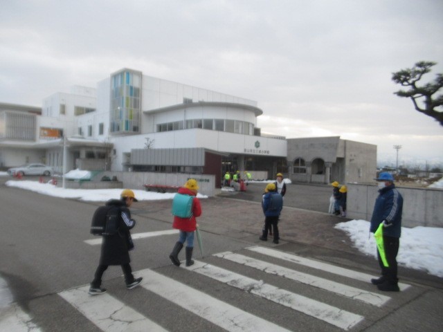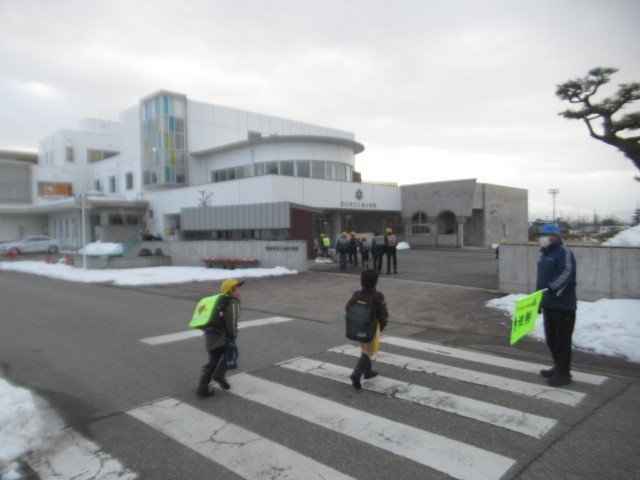 2月上旬にしては、穏やかな朝を迎えています。元気に登校しています・・・
