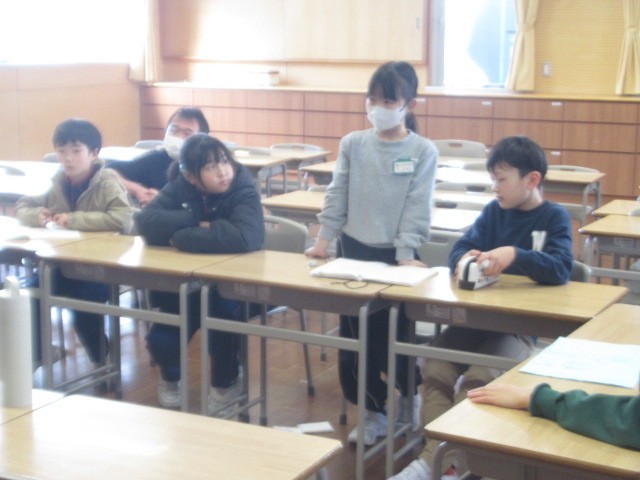 昨日5日(木)、代表委員会(1~5年の学級代表2名ずつ)が開かれ、6年生の卒業をお祝いする活動の「目当て」について話し合われました。学級で話し合った意見を出し合った後、熱心な話合いが行われました。特に、6年生に「感謝」を・・・「伝える」のか、「届ける」のか・・・各学級代表が自分で考え、その理由もしっかり発表していました。ある子は「じてんで調べたら・・・でした」といい、ある子は、「(感謝を)言葉で直接、伝えたい!」といい、ある子は「言葉だけでなく、(感謝を)カードや手紙でも届けたい!」、などなど。安易に「多数決」で決めてしまうのではなく、相手の思いや理由をきちんと聞いて判断し、決定することができました。お世話になった6年生への「感謝の気持ち」が目に見えるようで・・・カ・ン・ド・ウ しました!