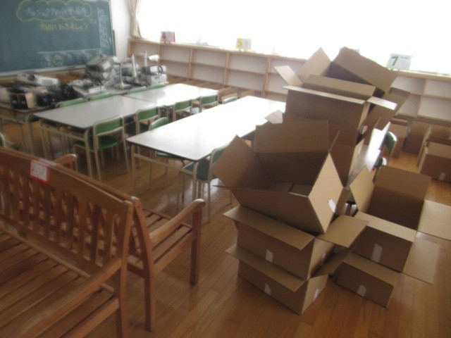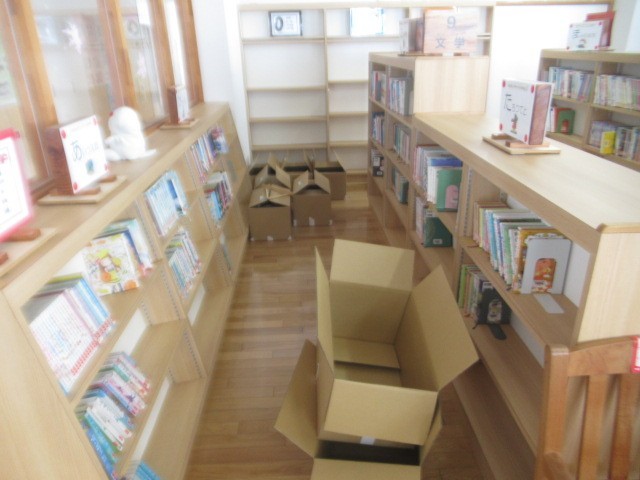 段ボールの組み立て作業は、図書委員会の子供たちが進んで手伝ってくれる、とのことです(笑顔)