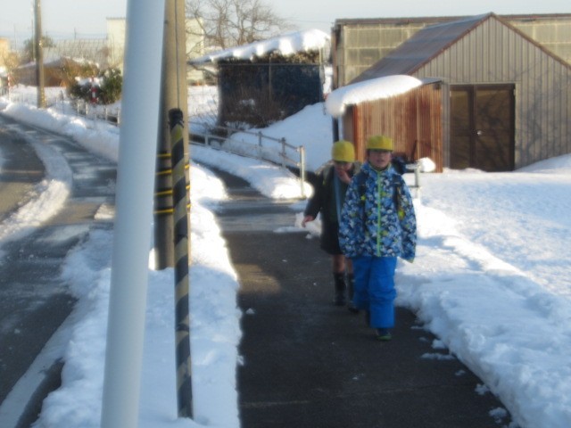 冷え込みました。とけた雪が水となり、そのまま凍ってツルツルになった場所があちらこちらに・・・。道路もガタガタなまま凍っています・・・