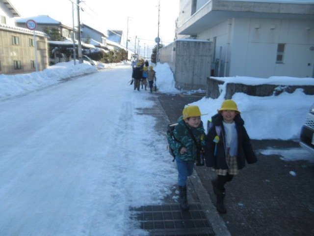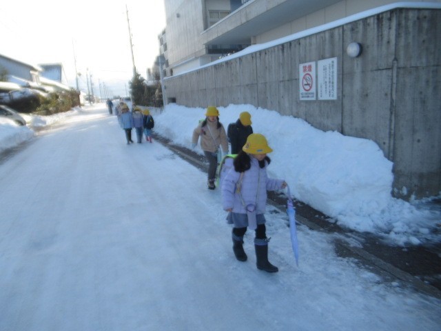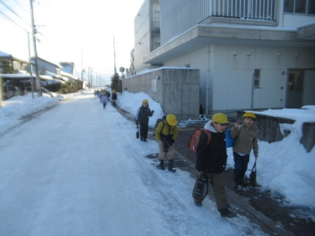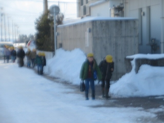 道路凍結のためでしょうか? 5分程遅れましたが、無事に到着しました。今日は、快晴の下、4~6年生「スキー学習」を実施します。スクールバスは、そのまま「スキーバス」としてゲレンデに向かいます・・・