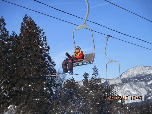 リフトに1人乗りしている人もいますが、リフトに慣れて2人乗りできるようになった子どもも現れました。