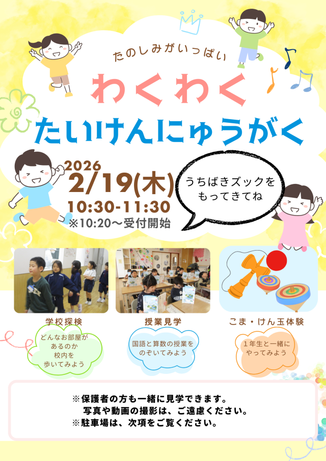 2月19日(木)に体験入学を行います。 現在、1年生の教室では、新しい1年生を迎えるための準備を進めています。 当日、元気な皆様にお会いできることを心待ちにしています。