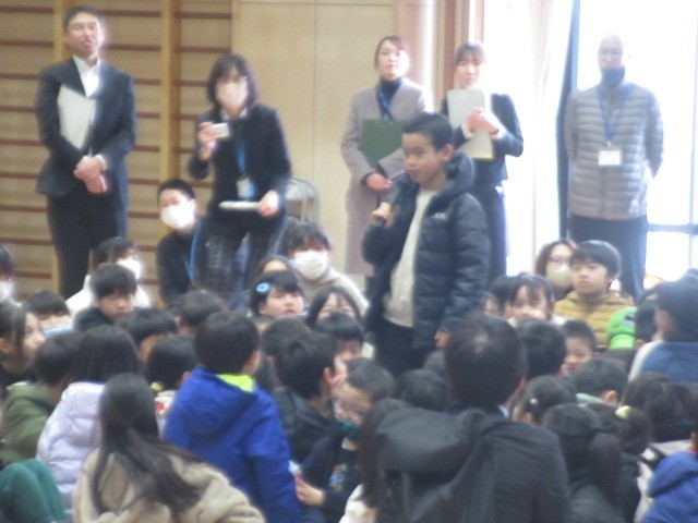 最後に、ここまで(登校練習、水橋学園の説明、校歌練習など)感想を聞き合いました。真っ先に手を挙げたのは、三成っ子たちでした(立派)