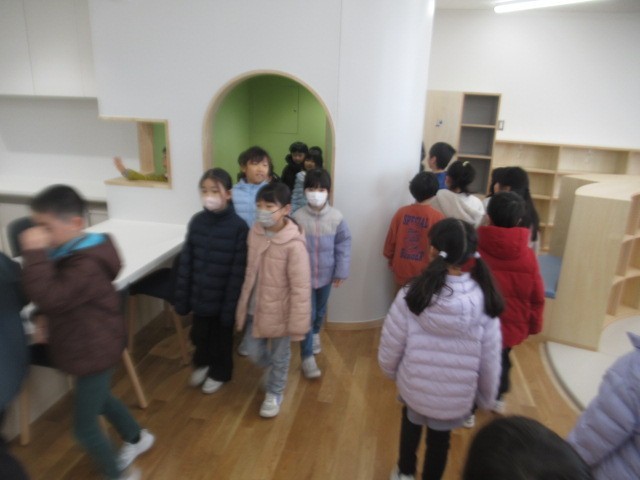 「みずはしホール(階段教室)」にも興味深々。「図書室(2F部分)」に入ってみました。1・2年生は、特別に・・・