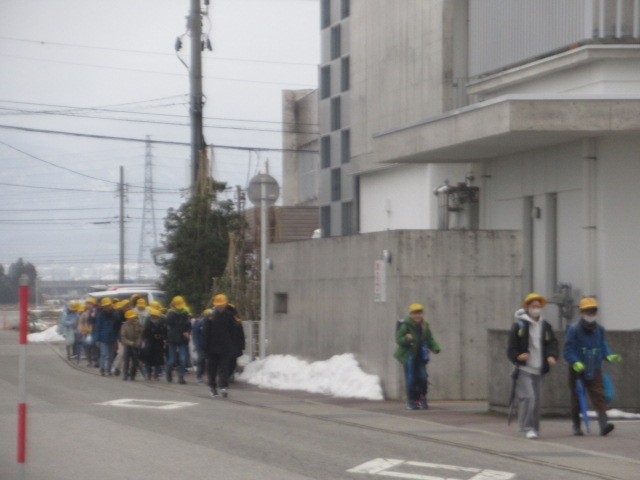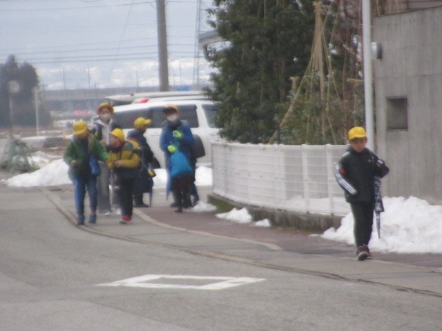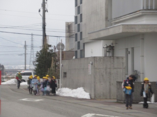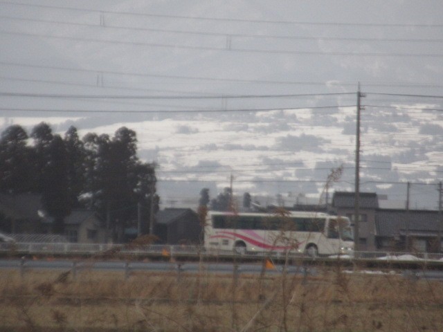 滑川の丘には、たくさん雪が残っています。スクールバスは、約5分遅れて到着しました・・・