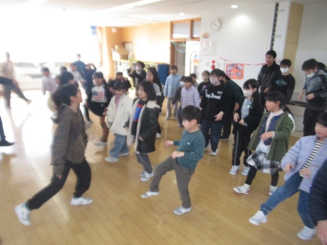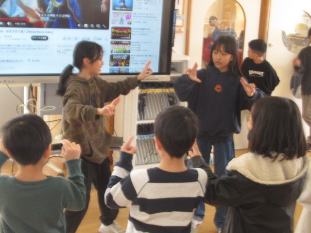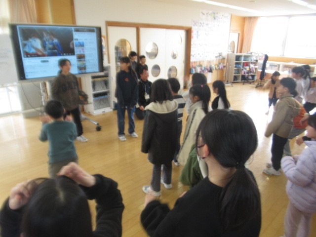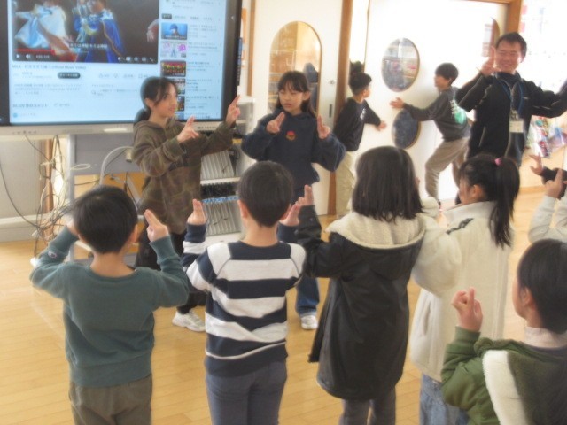 運動委員の子供たちが、サンサンタイムに「ダンス教室」を開いてくれました。たくさんの子供たちが3Fワークスペースに集まりました・・・