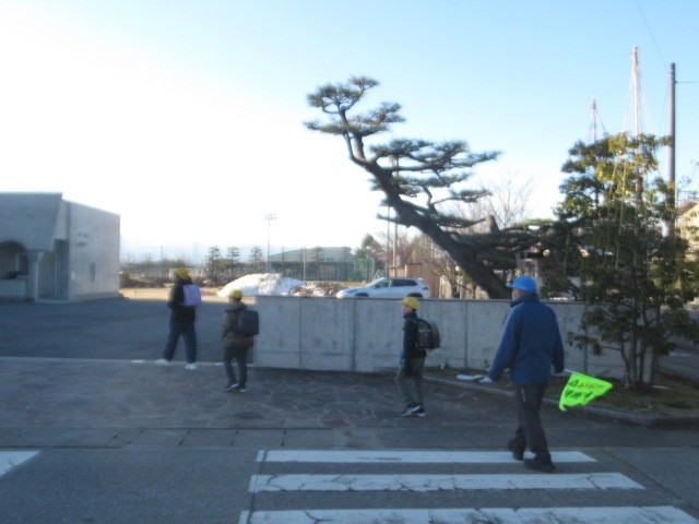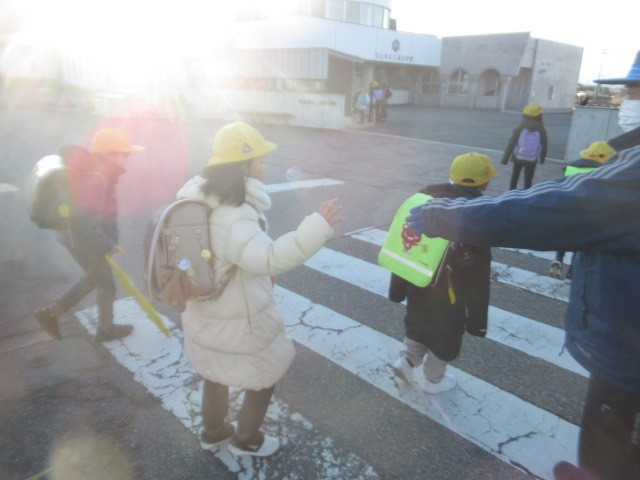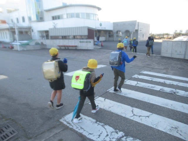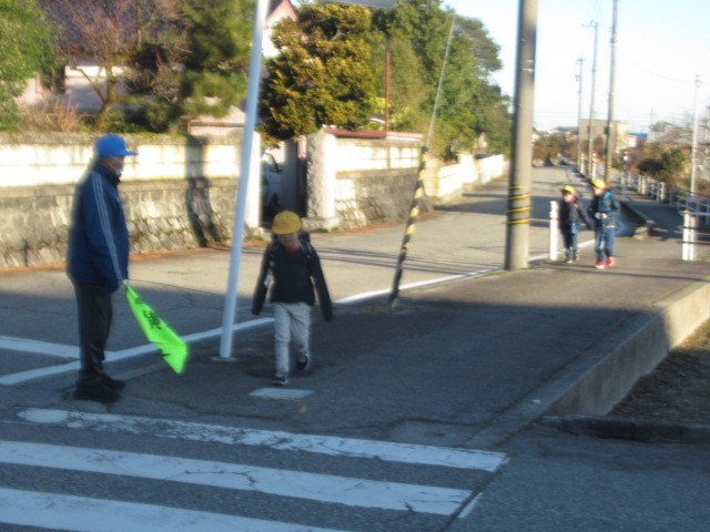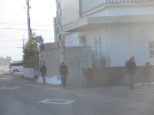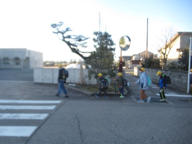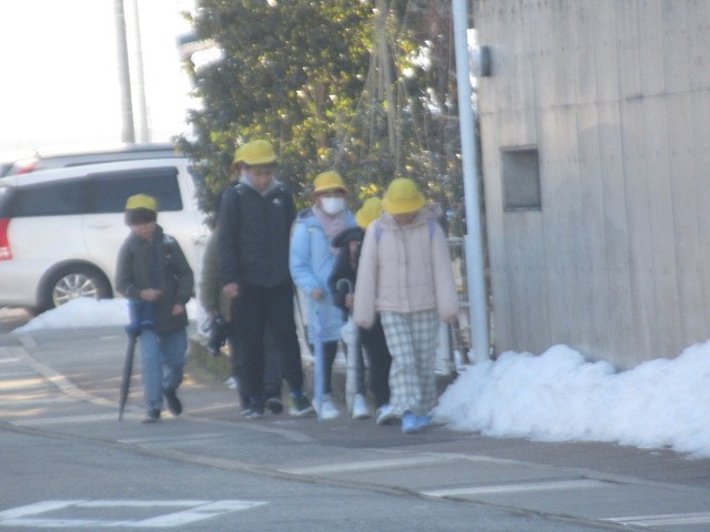 快晴です。冷え込みました。がんばって登校しています。半ズボンの強者も・・・