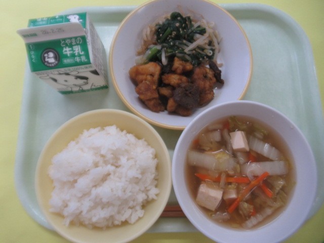 今日のメニューは、「東アジア風献立」と呼べばいいでしょうか? 「ナムル」は韓国、「中華スープ」は中国。では、「鶏肉とレバーのカレー風味」は日本? 東南アジア? インド? 三成っ子のみなさん、調べてみてくださいね!