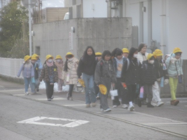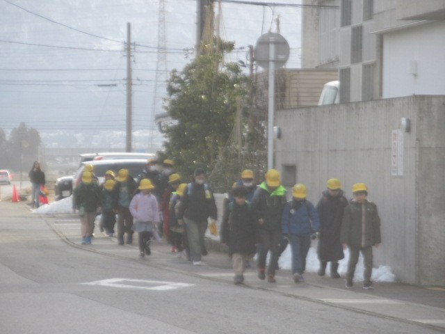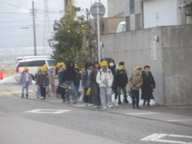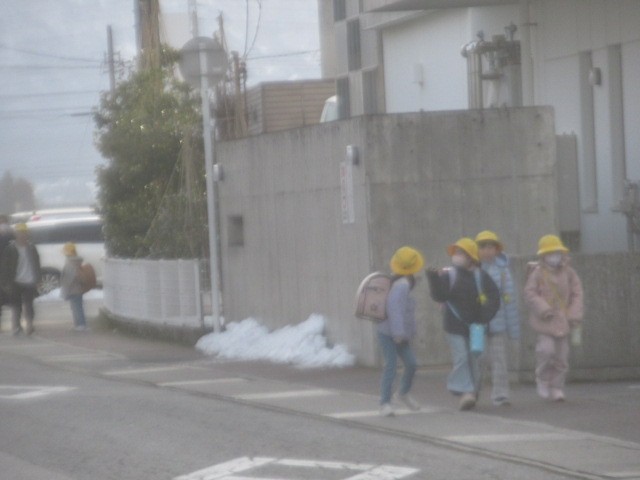 定刻より数分早く到着しました。元気に登校しています・・・