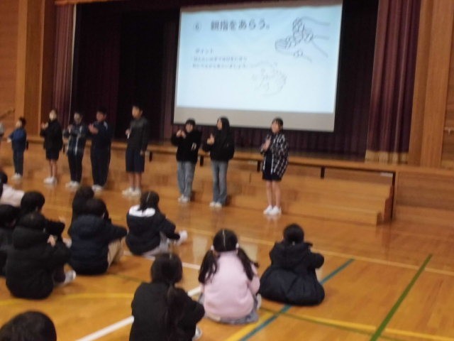 生活委員会からは、感染症の流行に備えて、「手洗い」の仕方について。指の間も液体石鹸でしっかり洗いましょう。