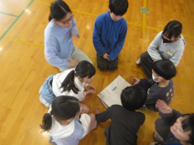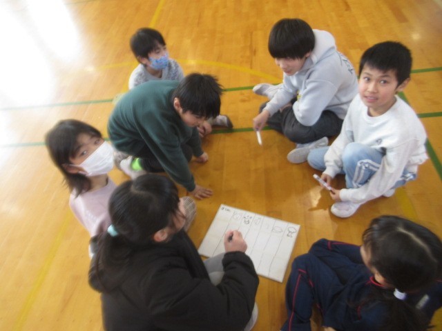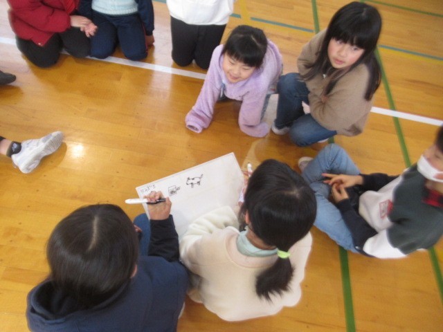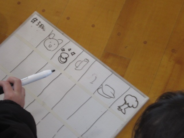 今日は、白団です。言葉を発しないで、絵を描くだけで「しりとり」をします。前の人が、何を描いたのか分からないと、次が描けませ~ん(苦笑)ところが・・・次々とつながっていくグループがありました(笑顔)すごい!