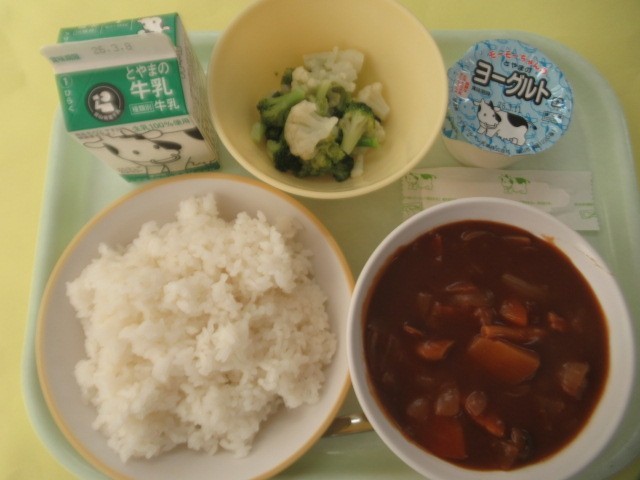 ・ごはん ・たべキリンハヤシ ・花野菜サラダ ・ヨーグルト ・牛乳