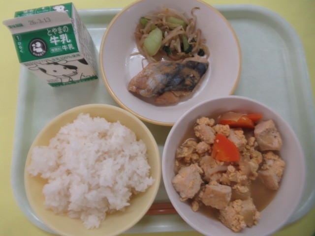 ・ごはん ・牛乳 ・鰆の西京焼き ・チンゲンサイソテー ・厚揚げの錦とじ