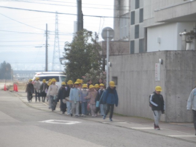 定刻より数分早く到着しました。元気に登校しています・・・