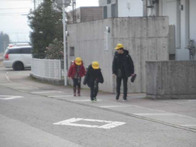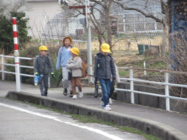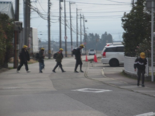 昨日とは打って変わり、雲が広がっています。元気に登校しています・・・