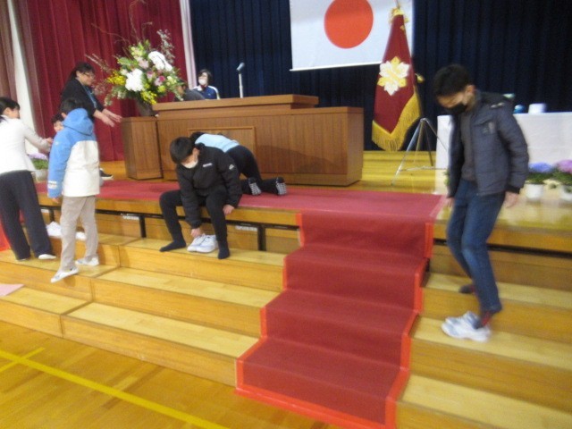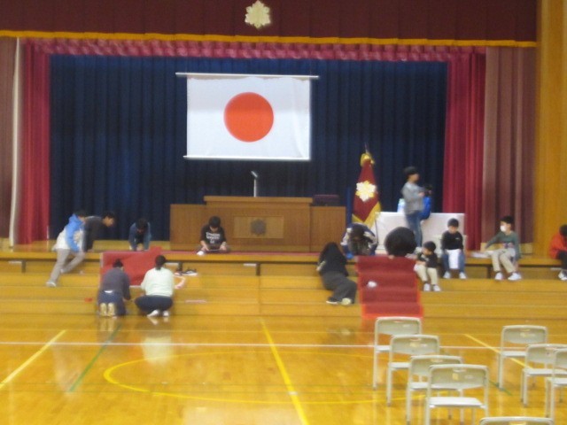 いよいよ明日は「閉校式」。全校で校舎内をピカピカにしました。「最高学年」の、5年生の皆さんが「閉校式」の準備をしてくれました。明日は、三成っ子全員で、気合を入れて・・・「ありがとう!」「水橋学園でも、がんばるぞ!」などの気持ちを表現してくれると思います(笑顔)