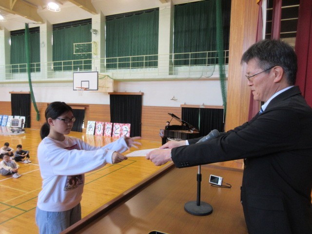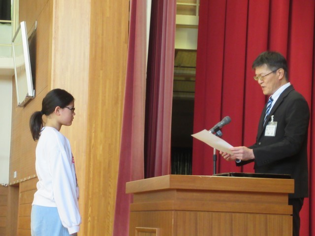 今年度、学校を1日も休まなかった児童(代表)に「皆勤賞」が手渡されました。今年度は「23名」もいます・・・