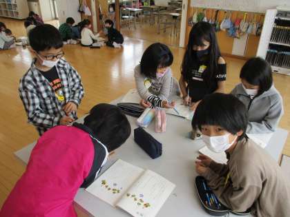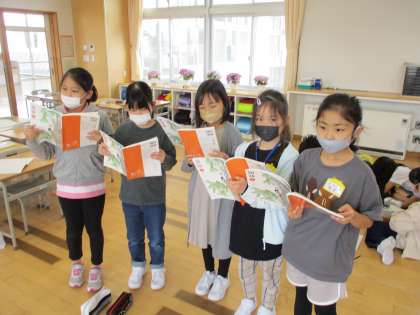 国語科の学習(3年生) 公開日 2022/04/22 更新日 2022/04/22 3年生 「きつつきの商売」の音読発表会に向けて、グループで音読練習をしています。声の大きさや登場人物の気持ちを考えて読んでいます。