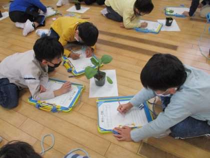 野菜の苗 (2年生) 公開日 2022/05/09 更新日 2022/05/09 2年生 5月になり、生活科の学習で野菜を育てることを始めます。4月に育てたい野菜を決めて、お世話の仕方を調べていました。まずは、それぞれの苗の観察です。茎や葉の様子を観察して、カードに絵を描き、野菜への思いを書きました。 これからが楽しみです。