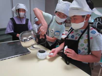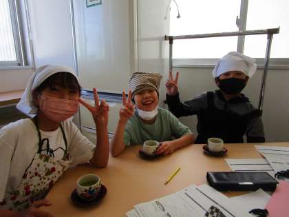 自分たちで入れたお茶は「甘みよりも苦みがある」と顔をゆがませながらも「美味しいね」と言いながら大事そうに飲んでいました。