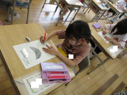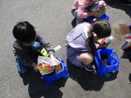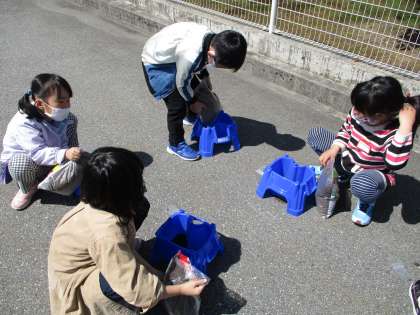 あさがおのたねをじっくり観察しました。「とがっている」「あかいところがある」「かたい」など、よく見てたくさんのことに気付いていました。そのあとの種植えも楽しんでいました。