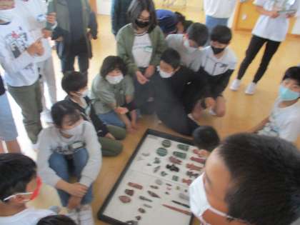 社会科 歴史の学習 (6年生) 公開日 2022/06/07 更新日 2022/06/07 6年生 社会科では、歴史の学習に入りました。土器や石器のレプリカを見たり触れたりしながら、昔の人々の生活を想像していました。