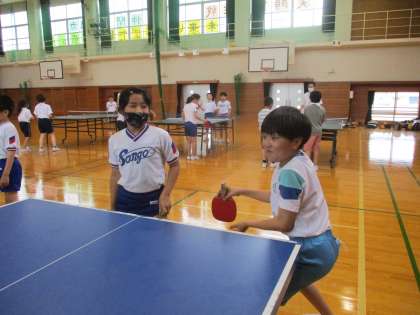 ボールゲームクラブでは、卓球を行いました。初めて体験する子供が多く、偶然の得点や失敗も含めて楽しんでいました。