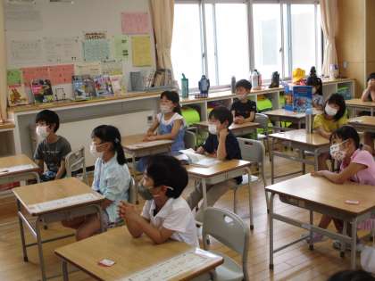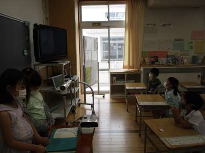 図書係の子が、みんなに読み聞かせを行いました。係の子が読んでいるのを、静かに、真剣に聞いている子供たちです。