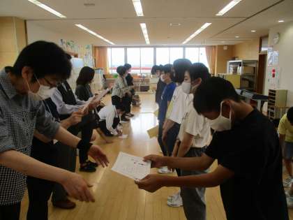 国語科では、「共感できる短歌をかこう」というテーマで短歌をつくりました。日々の楽しい時を思い出して、題材を決め、言葉を選んで表現しました。最後には、多くの先生方を招いて審査会をしました。