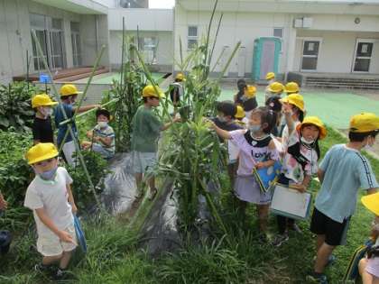 畑の野菜は、子供たちの水やり等の世話をしたことと、太陽と雨の恵みとでぐんぐんと育っています。