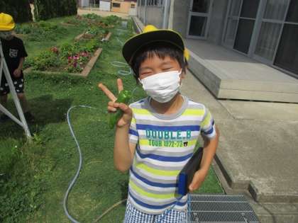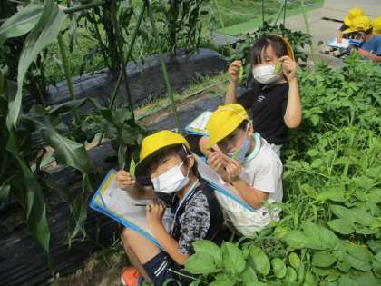実がなって収穫し、持ち帰った子供もいます。これからどんどん実がなるのが楽しみです。