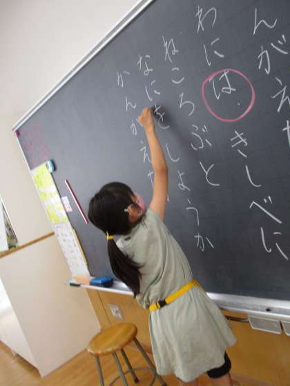 はをへを使おう(1年生) 公開日 2022/06/30 更新日 2022/06/30 1年生 国語の学習で、くっつきの「は」「を」「へ」の学習をしています。文章のどこにくっつきの言葉があるのか、見つけて積極的に伝えようとする子供たちです。