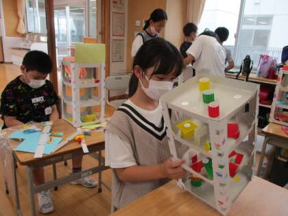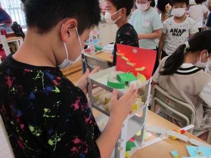 図画工作科(4年生) 公開日 2022/07/14 更新日 2022/07/14 4年生 図画工作科の学習では、ビー玉を転がして遊ぶコロコロガーレを作りました。 面白いコースを作ったり、凝ったデザインを考えたりと工夫しながら作っていました。 最後には、完成した自分や友達のコロコロガーレで遊びました。