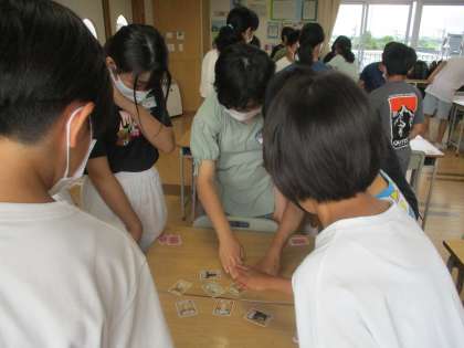 社会科 カルタ大会 (6年生) 公開日 2022/07/21 更新日 2022/07/21 6年生 歴史人物カルタを利用して、カルタ大会を行いました。歴史上の人物の顔と名前を一致させ、素早く取ることできるようになりました。