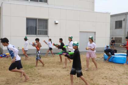 後半には水遊びをしました。水鉄砲でどんどん撃ち、楽しんでいました。