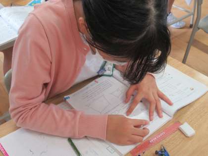 算数科では、「拡大図、縮図」の学習を進めています。拡大する、縮小するとは、どういう意味なのか考えました。