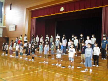 連合音楽会に向けて(3,4年生合同) 公開日 2022/10/07 更新日 2022/10/07 4年生 音楽の時間にそれぞれの学級で合唱の練習をしてきました。今週からは3年生と4年生合同で合唱練習をしています。初めて高音パートと低音パートを合わせて練習しましたが、音につられないように、たくさん練習に取り組んでいます。
