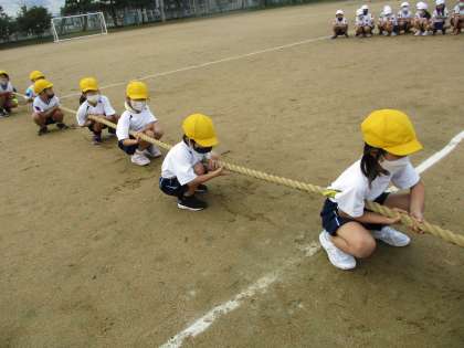 運動会に向けて、綱引きの練習をしました。3年生さんのかけ声に元気いっぱいに返事をし、一生懸命に綱を引っ張っていました。子供たちの様子です。
