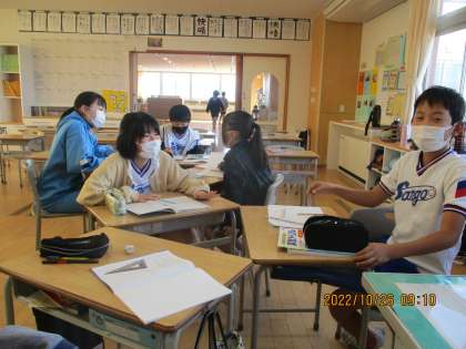 算数科では、比例の性質を生かして、およその紙の枚数を当てる活動をしています。10枚の重さを参考にしたり、厚さを測って生かしたりするなど、学んだことを生かして活動しています。