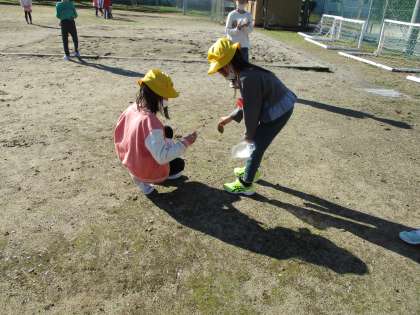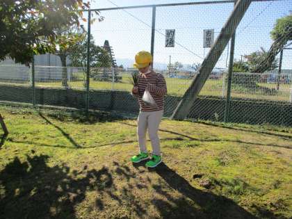 生活科で秋見つけをしています。グラウンドに出て、葉っぱや姫リンゴなどを拾いました。拾った物や準備した物を使って、リース作りを行っていきます。
