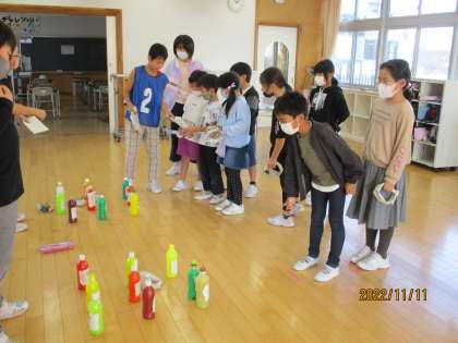 ドミノのブースや輪投げのブース、缶積み等、たくさんのゲームで遊んでいます。