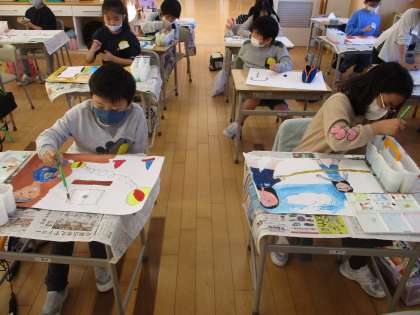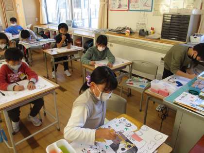 図画工作科の学習(3年生) 公開日 2022/11/15 更新日 2022/11/15 3年生 図画工作科の学習では、3年生の思い出を題材に絵を描いています。日頃の授業や学校行事など、自分の1番心に残っている思い出を振り返りながら、丁寧に描き進めています