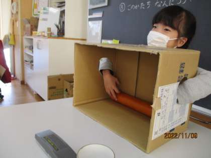四角や丸など、いろいろな形のものを、手で触ってどんな形か当てるゲームをしました。角や面の形を頼りに形を当てていました。