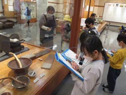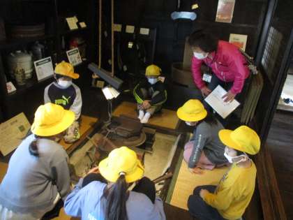 校外学習 民俗民芸村(3年生) 公開日 2022/11/30 更新日 2022/11/30 3年生 初めて見る昔の道具に、子供たちはとても驚いていました。昔の人々の知恵がたくさんつまっているんだなと感じていました。