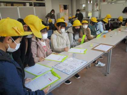 卒業制作1 (6年生) 公開日 2022/12/10 更新日 2022/12/10 6年生 今日は、卒業制作としてペーパーウエイトを作りに行きました。まず、デザインを決めました。できあがりの様子を想像しながら、一生懸命に考えていました。